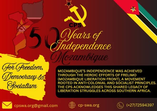The Communist Party of Swaziland (CPS) extends its heartfelt congratulations to the people and government of Mozambique on the momentous occasion of their 50th anniversary of independence (celebrated on June 25, 2025). This milestone marks five decades of sovereignty, resilience, and progressive struggle since Mozambique’s liberation from Portuguese colonial rule in 1975.